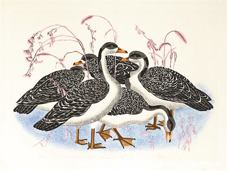 《春雁》 水印木刻 50×73cm 2001年 蒙希平